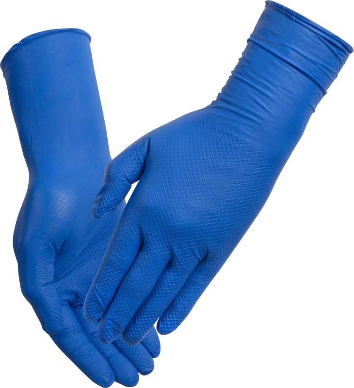 Thor Ultra Grip handschoen nitril blauw met visschub structuur.
